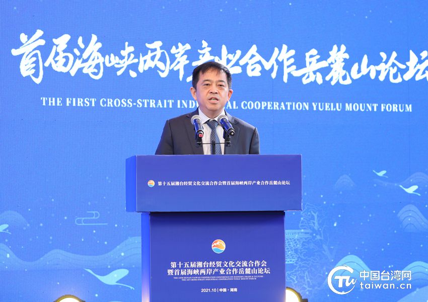 中國臺灣網10月21日長沙訊 (記者 張亞靜)10月21日上午,第十五屆湘臺經貿文化交流合作會暨首屆海峽兩岸產業合作岳麓山論壇在長沙開幕。三一集團董事、三一重工總裁向文波作為湖南企業代表進行了題為“推動機械制造轉型,促進兩岸產業合作”的主旨演講。他表示,“青山一道同云雨,明月何曾照兩鄉”。湖南與臺灣兩岸人民同根同祖,同血同脈。海峽兩岸產業合作區(湖南)的建設,鼓舞著湖南與臺灣兩岸企業互利互助、共創共贏的決心,鼓舞著兩岸同胞共謀發展、共享發展的慷慨氣概。