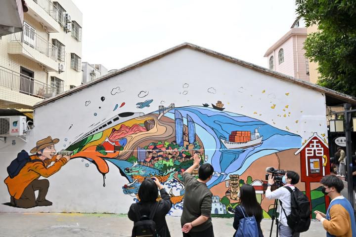 正在此間舉行的第十三屆海峽論壇期間,這幅作品獲得第三屆創意涂鴉大獎賽優秀設計獎。“它的‘彩蛋’在于兩岸聯動:在金門,有一幅一模一樣的涂鴉。”創作者之一、福建青年徐晨暉說,希望這兩幅遙相呼應的涂鴉能夠成為廈金的新景點。