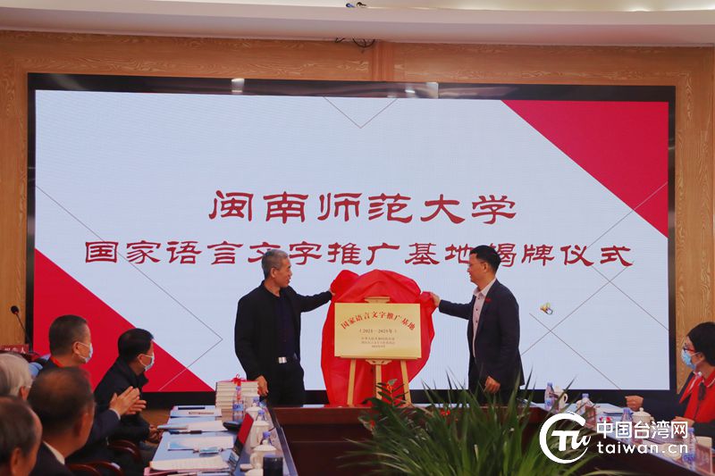 會上舉行了閩南師范大學國家語言文字推廣基地揭牌儀式。李順興、彭杰共同為基地揭牌。