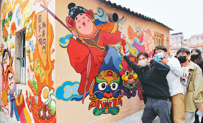 臺灣青年在福建用創意涂鴉活化古村落。中新社記者 張 斌攝