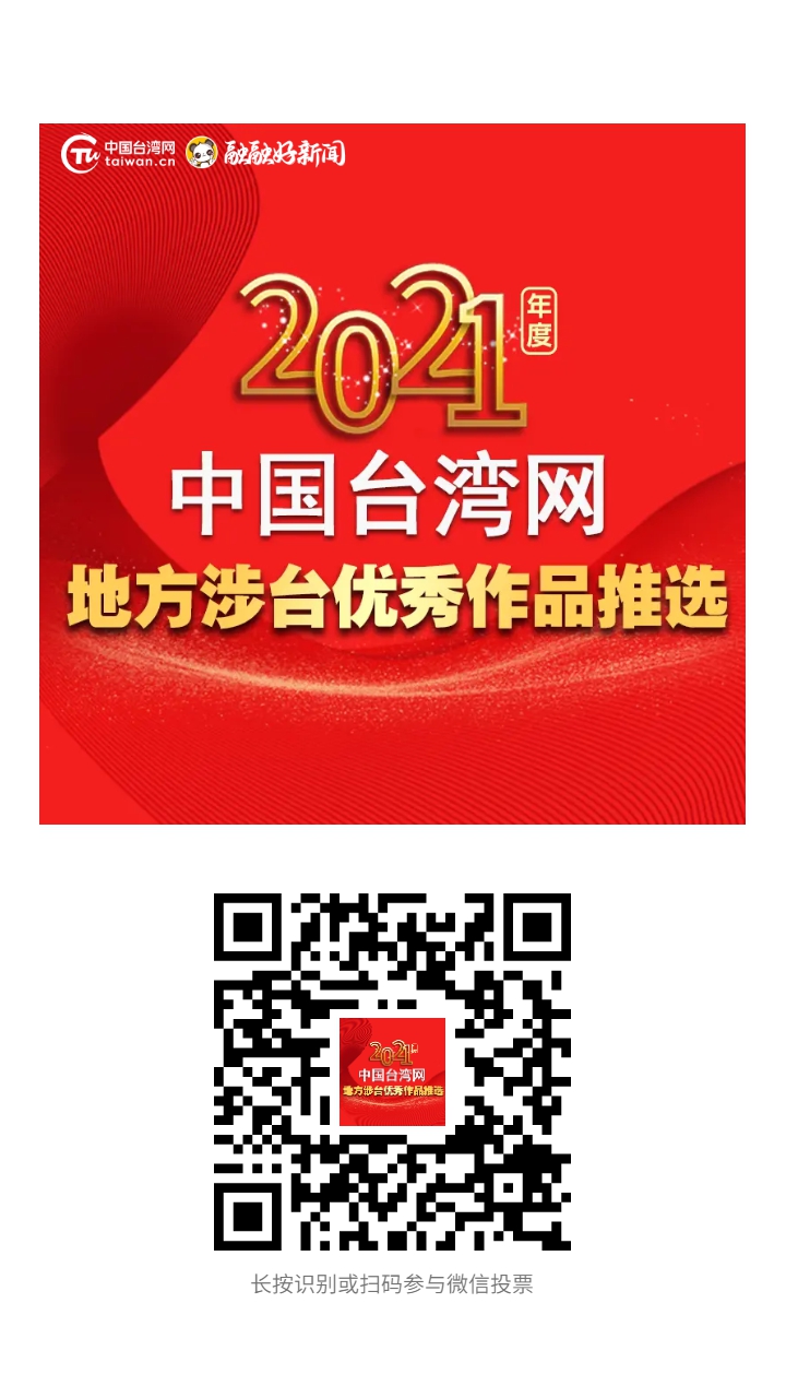 中國臺灣網1月19日北京訊(記者 馬萌) 為盤點、梳理一年來地方涉臺活動精彩亮點,展示建黨百年各地涉臺宣傳報道成效。經國臺辦批準,中國臺灣網“2021年度地方涉臺優秀作品”推選活動于今日正式上線啟動。本次推選活動共設置優秀圖文新聞、優秀視頻新聞、優秀頭圖新聞三個獎項。兩岸網友可登錄中國臺灣網(www.oucfdu.com)或中國臺灣網新浪微博、今日頭條、Facebook等兩岸新媒體平臺瀏覽優秀入圍作品,并通過微信小程序掃碼參與投票。