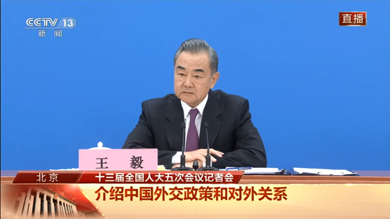國務委員兼外交部長王毅答中外記者問。(圖片來源:央視畫面截圖)