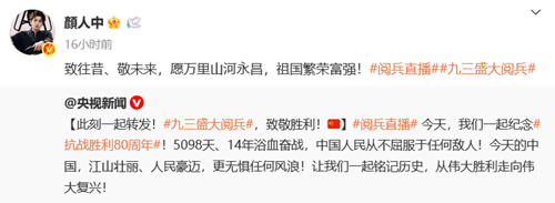 臺(tái)灣網(wǎng)友在相關(guān)內(nèi)容下留言表示,“作為一個(gè)堂堂正正的中國人,今天真的很驕傲”,“身在臺(tái)灣省的中國人,共同紀(jì)念中華民族抗戰(zhàn)勝利,中華民族永遠(yuǎn)昌盛”,“身為臺(tái)灣人,盡管政治體系不同,依然為了中國人民跟中國的強(qiáng)大而驕傲”。