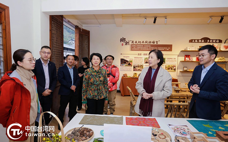 11月12日下午,在兩岸鄉(xiāng)創(chuàng)青年代表的共同見證下,“兩岸青年鄉(xiāng)創(chuàng)園”獲寧波市關(guān)工委授予“鄉(xiāng)建·寧波”甬臺(tái)青年鄉(xiāng)創(chuàng)交流點(diǎn)”稱號(hào),寧波市關(guān)工委主任翁魯敏與區(qū)委常委、寧波溪口雪竇山名山建設(shè)黨工委副書記、管委會(huì)副主任、溪口鎮(zhèn)黨委書記張義廉共同為交流點(diǎn)揭牌。作為匯聚兩岸溫度的創(chuàng)意空間,甬臺(tái)青年鄉(xiāng)創(chuàng)交流點(diǎn)內(nèi)不僅布置有充滿年代感的老舊家具,獨(dú)具鄉(xiāng)村氛圍的竹制桌椅,還有楊梅干、“壺潭紅”高山生態(tài)茶等鄉(xiāng)創(chuàng)風(fēng)味,與石頭手繪、木片畫、“母親的藝術(shù)”拼布等手工藝品,展示出兩岸青年的鄉(xiāng)創(chuàng)實(shí)踐與豐碩成果。傳統(tǒng)與現(xiàn)代在此交織,勾勒出一幅兩岸交流互動(dòng)的“鄉(xiāng)”情畫卷。