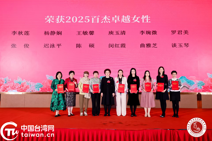 “2025百杰卓越女性”獲獎?wù)叻峙吓_接受榮譽(yù)證書。(中國臺灣網(wǎng)發(fā))