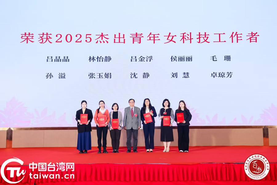 “2025杰出青年女科技工作者”獲獎?wù)叻峙吓_接受榮譽(yù)證書。(中國臺灣網(wǎng)發(fā))
