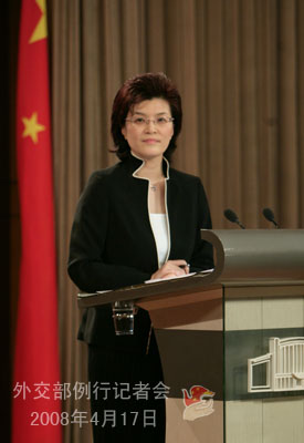 2008年4月17日下午,外交部發(fā)言人姜瑜舉行例行記者會(huì),就奧運(yùn)火炬?zhèn)鬟f、CNN道歉聲明、達(dá)賴與中央政府接談等問題答記者問。