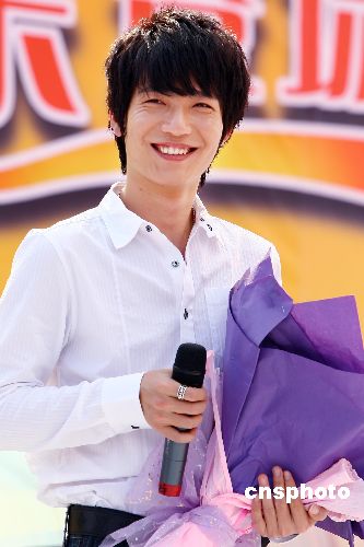 2007年10月28日,超女厲娜和快男陳楚生在南寧參加中國—東盟博覽會為某汽車品牌的新車首發(fā)式作宣傳,厲娜和陳楚生為到場的觀眾各獻(xiàn)上三首歌曲,厲娜還臨時客串了一把車模。 中新社發(fā) 駱文剛 攝