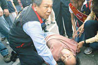 陳水扁掃街遭民眾舉牌抗議 隨扈太累摔下車