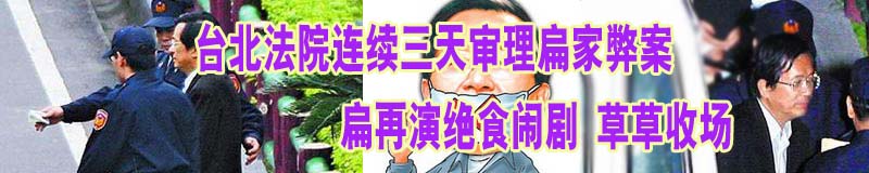 臺(tái)北地方法院24日開(kāi)庭審查陳水扁涉及的公務(wù)機(jī)要費(fèi)等弊案,經(jīng)過(guò)漫長(zhǎng)審訊,最后在陳水扁獨(dú)白近二小時(shí)后,庭訊于晚間7時(shí)許結(jié)束。在庭訊中,陳水扁可謂是使出了看家的本領(lǐng),不但堅(jiān)持不認(rèn)罪,還炮火四射大爆“內(nèi)幕”,企圖拉眾人下水,“拖延戰(zhàn)術(shù)”、“烏賊戰(zhàn)術(shù)”被陳水扁運(yùn)用得爐火純青......《全文》 |