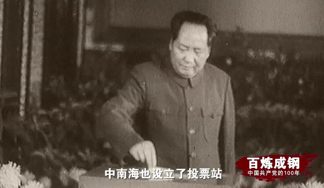 中南海也設(shè)立了投票站,毛澤東、朱德、劉少奇和周恩來都來到投票站投票。