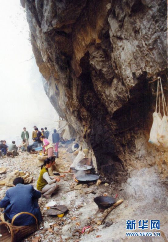 那年冬天,改變下莊人命運(yùn)的這條路開(kāi)工了。全村青壯年帶著工具和干糧上山,吃住在山洞,睡覺(jué)就在腰間拴根繩子,另一頭在老樹(shù)根上打個(gè)結(jié),以防夜里翻身掉下懸崖。為了早日修通公路,毛相林在山上住了3個(gè)月沒(méi)回家。