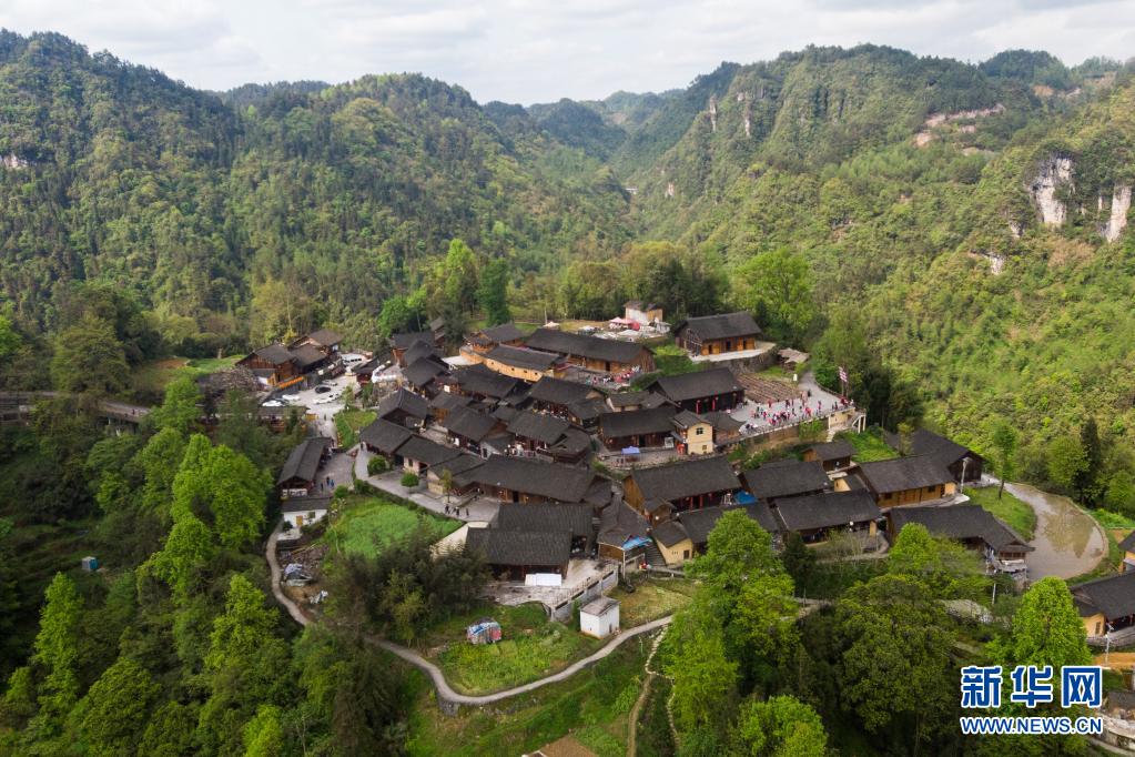 這是4月15日拍攝的湖南湘西十八洞村梨子寨(無人機照片)。新華社記者 陳思汗 攝