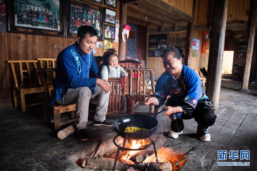4月16日,在湖南湘西十八洞村,龍先蘭一家在做早餐。新華社記者 陳思汗 攝