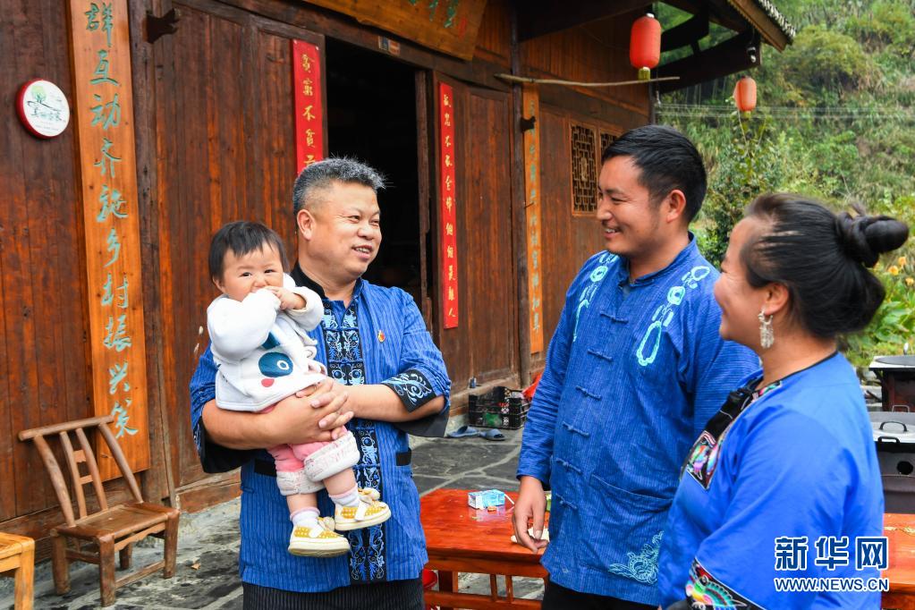 扶貧隊隊長龍秀林回到十八洞村看望龍先蘭一家,手中抱著龍先蘭的女兒龍思恩(2020年10月27日攝)。新華社記者 陳思汗 攝