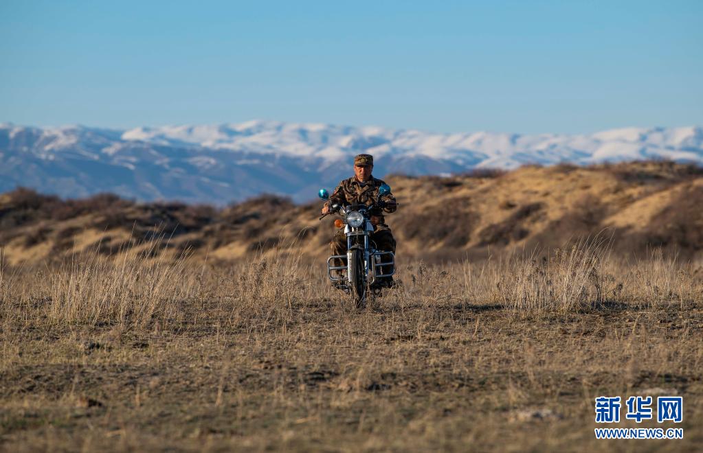 新疆生產(chǎn)建設兵團第10師185團職工馬軍武騎摩托行駛在管護轄區(qū)內(nèi)(4月9日攝)。新華社記者 胡虎虎 攝