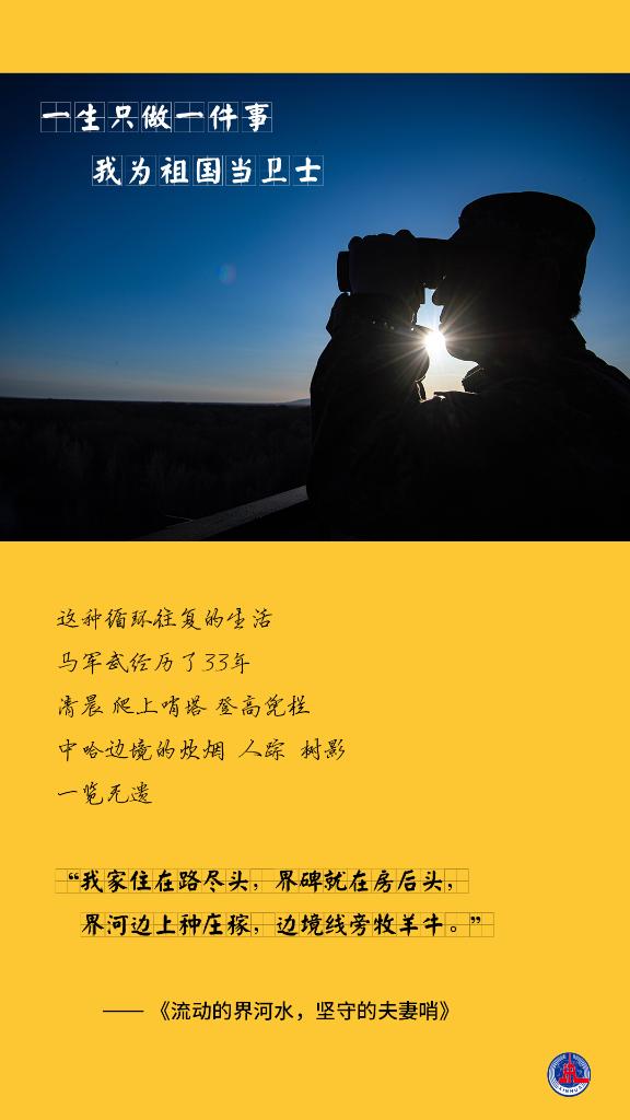 馬軍武爬上哨塔,登高遠眺,中哈邊境的炊煙、人蹤、樹影一覽無遺。“我家住在路盡頭,界碑就在房后頭,界河邊上種莊稼,邊境線旁牧羊牛。”這是他生活最生動的寫照。