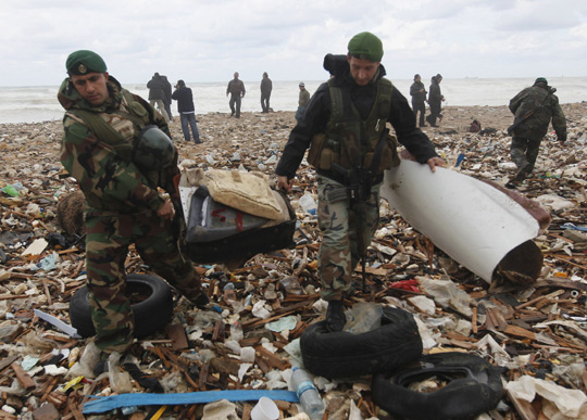 目前,有關(guān)方面已經(jīng)鎖定了飛機(jī)墜海的地點(diǎn),為黎巴嫩沿海小鎮(zhèn)納阿梅以西約3.5公里海域。飛機(jī)墜毀后幾個小時,一些殘骸和機(jī)上物品被沖上了附近的海岸,包括座椅、嬰兒鞋、滅火器、手提箱和藥瓶等。