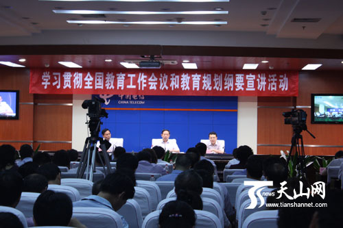 宣講會由新疆維吾爾自治區黨委常委爾肯江?吐拉洪主持,新疆生產建設兵團副司令員宋建業出席。本次宣講活動以視頻會形式進行,自治區黨委統戰部、教育廳、編辦、發改委、民(宗)委、財政廳、人力資源和社會保障廳、新聞出版局以及兵團相關部門負責人,部分地州、兵團分管教育負責人,自治區教育廳、兵團教育局有關部門負責人,部分高校、中職和中小學校長在主會場參會。自治區各地州、縣(市),兵團各師、團教育行政部門中層以上干部,高校、中職和部分中小學校長在分會場參會,總計近萬人直接聽取了宣講報告。 (記者 楊晨光 蔣夫爾)