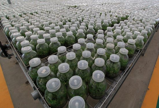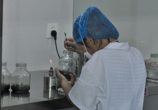 走進(jìn)六安安徽圣農(nóng)生物科技股份有限公司石斛培育基地,眼前一瓶瓶長滿綠色小苗的植物立即吸引了記者的目光。“這就是我們培育出來的霍山石斛小苗!”該公司董事長拿出一個瓶子,里面密密麻麻長著無數(shù)顆像草芽一樣的細(xì)小植物。“瓶壁上的每一個細(xì)小微粒,都可以長出一顆米斛來。”他告訴記者,他們采用的這種技術(shù)叫“植物組織培養(yǎng)”,其實(shí)就是植物“克隆”,即利用植物的體細(xì)胞進(jìn)行分裂培育,來孕育新生命。