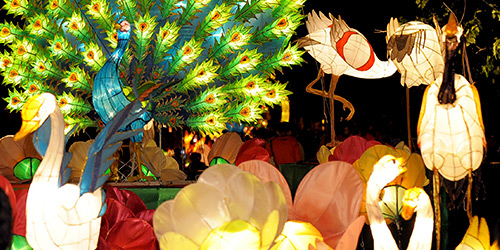 中秋期間,香港會舉行中秋彩燈會,讓游客與市民歡聚同慶佳節。維多利亞公園的中秋彩燈會規模最大,豐富節目包括彩燈展覽、傳統技藝表演、游戲攤位及燈謎競猜等。今年香港文化中心露天廣場的彩燈展覽,以“花隨月影舞霓裳”為主題,展現花仙在中秋圓月下翩翩起舞、泛起漫天花瓣的景象。另外,新界的沙田公園、青衣公園也會舉行彩燈會。