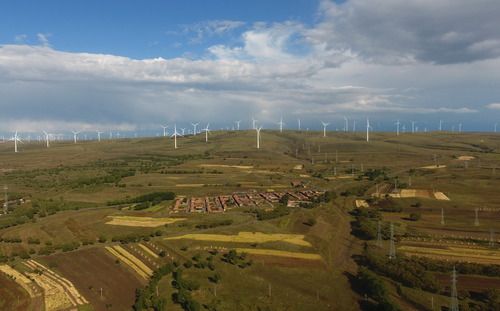 9月壩上,藍(lán)天、草原、旋轉(zhuǎn)的巨大“風(fēng)車”相互映襯。這里是國家規(guī)劃的9個千萬千瓦級風(fēng)電基地之一,將助力北京冬奧會成為“綠色冬奧”。