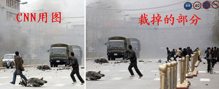 引起中國(guó)網(wǎng)民憤慨的報(bào)道大多來(lái)自美國(guó)有線(xiàn)電視新聞網(wǎng)(CNN)、英國(guó)廣播公司(BBC)以及德國(guó)《柏林晨報(bào)》等西方媒體。3月17日,BBC在其網(wǎng)站上刊登了一張照片,說(shuō)明寫(xiě)的是“在拉薩有很多軍隊(duì)”,而畫(huà)面卻是中國(guó)公安武警協(xié)助醫(yī)護(hù)人員將受傷人員送進(jìn)救護(hù)車(chē)的場(chǎng)景。而在CNN網(wǎng)站發(fā)表的一張圖片,卻將反映暴徒投擲石塊攻擊軍車(chē)的部分裁剪掉,而僅顯示出軍車(chē)在路上行駛,前面則有人在奔跑。這些或張冠李戴或刻意歪曲的報(bào)道,其用意不言自明。