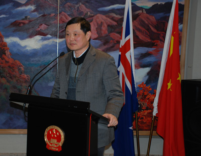 廖總在致辭中對全體當選理事表示祝賀,對該會多年來支持祖(籍)國統一大業表示感謝,勉勵該會在黃瑋璋會長的帶領下進一步加強團結,廣泛團結其它華人社團,加強與當地臺胞的文化聯誼活動,不斷增進了解與友誼。廖總表示,去年5月以來兩岸關系取得了一系列重要成果和突破性進展,步入和平發展的正確軌道。最近,臺灣遭受 “莫拉克”臺風侵襲,造成重大損失,目前大陸各界踴躍為受災地區捐款,體現了兩岸同胞血濃于水的深情厚誼。新西蘭中國和平統一促進會號召當地僑界為臺灣災區捐款,對此表示贊賞。廖總希望和統會繼續關心祖(籍)國經濟建設,支持總領館工作。