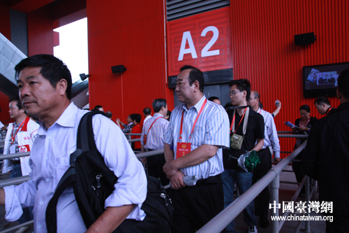 近150位海外統(tǒng)促會(huì)會(huì)長(zhǎng)今日在滬參觀了上海世博會(huì),圖為會(huì)長(zhǎng)們排隊(duì)等候參觀中國(guó)國(guó)家館。(中國(guó)臺(tái)灣網(wǎng) 楊麗 攝)