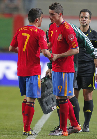 對(duì)波蘭的比賽,托雷斯還在替補(bǔ)席上等待了一個(gè)多小時(shí),最后,博斯克終于決定將他派遣上場(chǎng),托雷斯上場(chǎng)時(shí),獲得了全場(chǎng)球迷熱烈的歡呼聲。托雷斯換下的是比利亞,博斯克似乎有意不讓他們同時(shí)上場(chǎng),因?yàn)槔蠋洸幌M吹角蜿?duì)的控球打法遭遇阻礙。進(jìn)球需要很多人的努力,但最后只能由一人來(lái)完成臨門(mén)一腳。