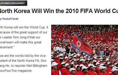 在接受442雜志的采訪時(shí),孫光浩雄心勃勃的喊出了朝鮮隊(duì)本屆世界杯的終極目標(biāo):“朝鮮隊(duì)將會(huì)奪得世界杯冠軍!”到目前為止,這恐怕是本屆世界杯上最讓人驚嘆的爭冠宣言。在談起球隊(duì)能夠奪冠的理由時(shí),孫光浩的態(tài)度更是十分堅(jiān)定:“本屆世界杯朝鮮將會(huì)奪冠,因?yàn)槲覀冇杏H愛的領(lǐng)袖金正日的巨大支持,這將會(huì)帶領(lǐng)我們達(dá)到最后的偉大目標(biāo)!”