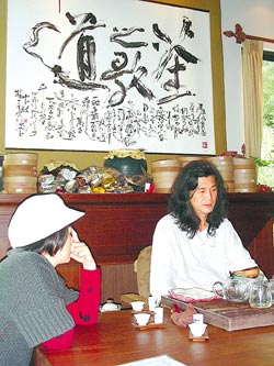 提倡“新茶道”的何在彬(右)吸引大陸游客來(lái)臺(tái)追尋心靈之旅。
