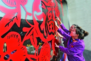 大紅福字貼起來 “福”氣連天。 本報(bào)記者 楊錕攝