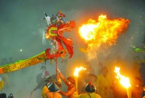 龍年看龍:陽山縣嶺背鎮每年在春節期間,就是自發組織舞火龍。整條火龍的長度大約為10米,編織好之后就放在鎮里的關帝廟。現在,起龍的時間為年初四開始,連續上演三天。一到晚上的7時左右,嶺背鎮的關帝廟都會人山人海,由舞龍隊的帶頭人開始進行拜祭儀式,而后就開始起龍,從鎮山的大街一直游行到每條小巷。家家戶戶準備好鞭炮,進行火龍游行中最精彩的“炸龍”,據說每年那家那戶的“炸龍”最火爆,那家人的生活就會吉星高照、喜事連連。火龍游行一般都在晚上的11時左右結束,在結束游行之后,都會返回關帝廟。由帶頭人再高呼“風調雨順”、“國泰民安”的祈禱聲中,將火龍送入江中,完成今年的火龍儀式。