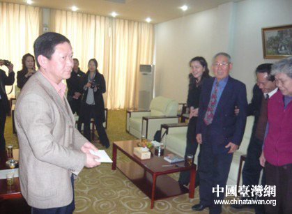 中國臺灣網4月12日息烽消息 清明時節,現年83歲高齡的老臺胞王錫筠先生(右三)在回鄉掃墓的過程中,得知貴州正遭受百年不遇的旱災。在獲悉息烽縣政府正組織開展有黨政機關、人民團體、企事業等單位干部職工和個人自發參與的“抗旱救災 愛如春雨”捐贈活動時,老先生在親屬的陪同下,以個人的名義捐款3000元人民幣,希望為抗旱救災工作略盡薄力。息烽縣民政局副局長穆文陽(左一)代表縣政府接受了捐贈。(中國臺灣網息烽縣統戰部田興)