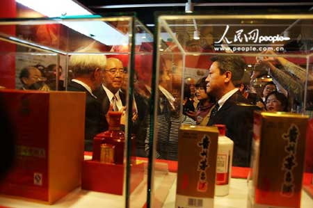 茅臺集團公司董事長季克良向吳伯雄等人介紹茅臺酒 杜榕攝