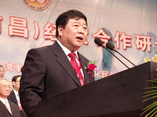 吳新雄在致辭中還介紹了江西省在農業、工業、服務業、國有企業改革和基礎設施建設等方面的合作優勢,并希望臺灣工商界人士能采取多種形式參與江西的公路、鐵路、機場、碼頭、電力、水利、環保等基礎設施投資建設。他說,衷心希望這次贛臺經貿合作研討會,能夠使贛臺兩地的合作更加廣泛和深入;熱忱歡迎臺灣各界新老朋友利用這次研討會的機會,在江西多走一走、看一看,進一步擴大交流,尋找更多合作的商機,江西友誼與合作的大門永遠為朋友們敞開著。