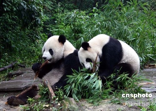 據飼養員瞿小姐介紹,兩只大熊貓是六月十八日從臥龍轉移來的,大約十五天后就與她熟悉了。目前,這對“姐弟”的關系比地震前更加親密,常常形影不離,十分親昵。