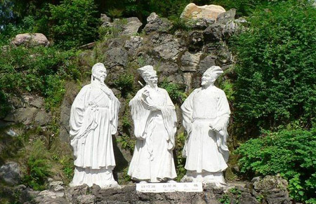 三游洞得名于唐代三個(gè)大文豪。唐元和十四年(公元819年),大詩(shī)人白居易由江州改任忠州刺史赴任途中,與其弟白行簡(jiǎn)途經(jīng)夷陵(宜昌古稱),在此遇到大詩(shī)人元稹。三人結(jié)伴到西陵山一游。發(fā)現(xiàn)這個(gè)“天生一洞”。三位詩(shī)人各賦詩(shī)一首,并由白居易“序而記之”。因此洞由他們?nèi)耸加危实妹叭味础薄?37年后北宋年間,又有三位文豪蘇洵、蘇軾和蘇轍父子同游此洞。同樣蘇氏父子也各題詩(shī)一首,留于洞壁。白氏兄弟與元稹之行,稱為“前三游”;蘇氏父子之行,稱為“后三游”。在三游洞旁的崖壁還刻有抗戰(zhàn)時(shí)期的愛(ài)國(guó)名將馮玉祥題寫(xiě)的“是誰(shuí)殺害了我們的父母兄弟”十二個(gè)大字。