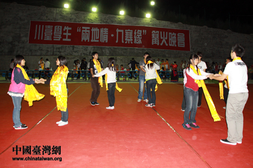 5日晚的九寨溝漳扎小學(xué),燈火通明、歡歌笑語。來自川臺兩地的青年學(xué)生圍坐在熊熊的篝火旁載歌載舞,表達(dá)著歡樂的心情。一場眾人狂歡的兩地青年學(xué)生篝火晚會,為第三屆臺灣學(xué)生天府夏令營活動又一次書寫著驚艷的感嘆號。