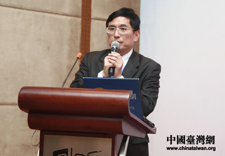 旺旺中時文化傳媒(北京)有限公司副總經(jīng)理呂庭華先生在分論壇上發(fā)表演講(中國臺灣網(wǎng) 趙輝 攝)