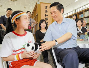5月26日上午,中共四川省委書記劉奇葆率“天府四川寶島行”參訪團一行到臺灣南投縣埔里小學,考察學校災后重建情況,并邀請臺灣中小學生今年暑假到四川參加夏令營。