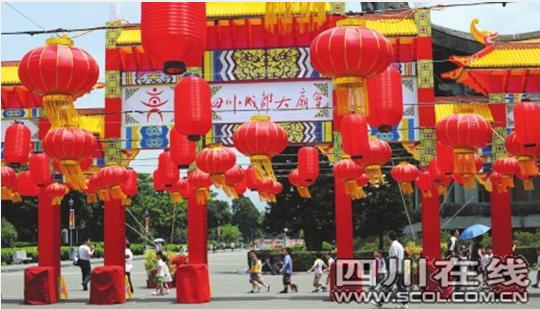 四川·成都大廟會在臺北孫中山紀念館中山廣場搭建 完畢,并進行了預展。尹鋼攝