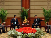6月27日下午,中共中央政治局常委、全國政協主席賈慶林在北京會見了來京舉辦“臺灣中部四縣市農特產品暨觀光展覽會”的臺中市市長胡志強、彰化縣縣長卓伯源、臺中縣縣長黃仲生以及南投縣農業處處長陳朝旺等一行。