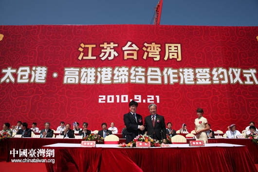 9月21日,江蘇太倉港與高雄港締結合作港簽約儀式在太倉港集裝箱碼頭舉行。(中國臺灣網 鐘寶華 攝)