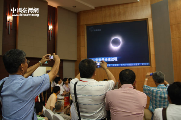 兩岸鄉村代表在上海青浦會議中心觀看500年一遇的日全食景觀。(中國臺灣網 邵磌 攝)