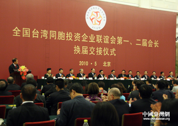 中國臺灣網5月14日北京消息  全國臺灣同胞投資企業聯誼會第一、二屆會長換屆交接儀式,14日下午在人民大會堂舉行。中國中央臺辦、國務院臺辦主任王毅、海協會會長陳云林等出席了儀式。(記者 鐘寶華)