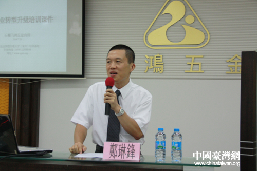 來自臺灣的知名講師鄭琳鋒對飛鴻五金飾品有限公司中層管理干部進(jìn)行培訓(xùn)。(中國臺灣網(wǎng) 胡珊珊 攝)
