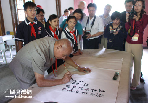 “繼承革命傳統,立志成才報國——林上元題,二零一一年九月八日,年八十七歲”。黃埔同學會會長林上元先生為武昌實驗小學題詞,希望小朋友們學習老一輩革命家的精神,立志成才,報效祖國。(中國臺灣網 李丹 攝)