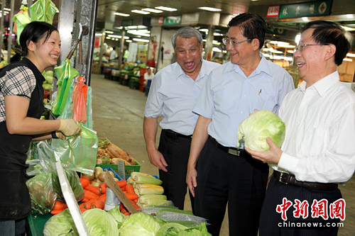 危朝安考察臺北果菜批發市場與菜農親切交談(圖)
